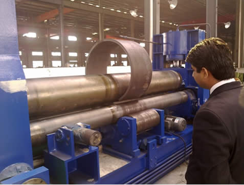 ![]() ![]() 三輥卷管機主要特點: 三輥卷管機結構型式為三輥非對稱式,上輥為主傳動,下輥垂直升降運動,以便夾緊板材,并通過下輥齒輪與上輥齒輪嚙合,同時作為主傳動;邊輥作傾升降運動,三輥卷管機具有預彎和卷圓雙重功能。 結構緊湊,操作維修方便。